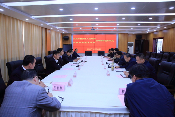 10月18日,安慶職業(yè)技術(shù)學(xué)院與宜秀區(qū)人民政府舉行校地合作簽約儀式。院黨委書記王進(jìn)會(huì)見了宜秀區(qū)區(qū)長鄭志一行。院長畢明生與鄭志簽署了《安慶職業(yè)技術(shù)學(xué)院—宜秀區(qū)校地合作協(xié)議》。