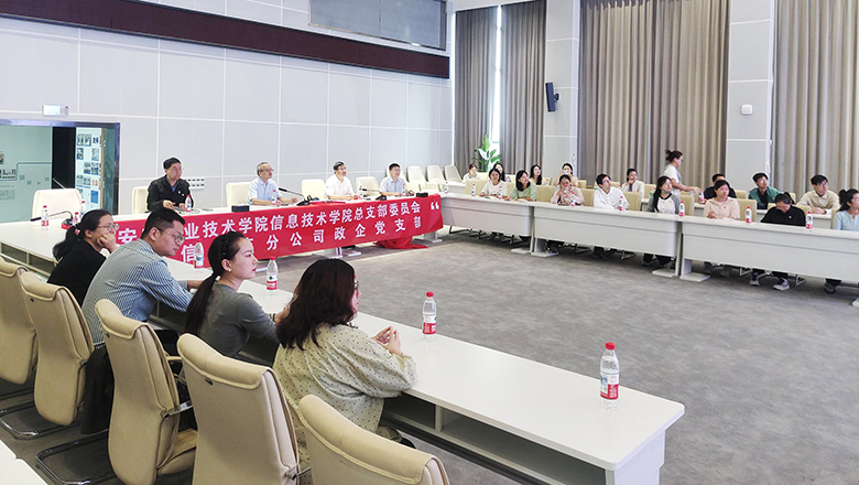 10月12日上午,安慶職業(yè)技術(shù)學(xué)院信息技術(shù)學(xué)院黨總支書(shū)記、院長(cháng)疏國會(huì )率全體教師黨員前往安慶電信開(kāi)展黨建聯(lián)建交流活動(dòng)。安慶電信政企事業(yè)部主任石楊華、教育部主任丁毛毛等接待了團隊一行。