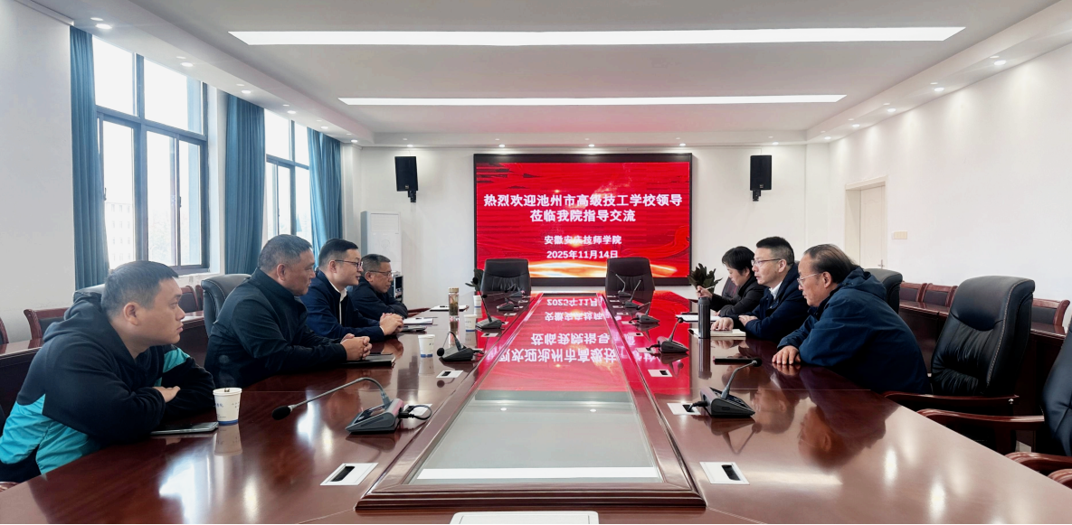 2025 年 11 月 14 日上午,池州市貴池區委組織部副部長(cháng)、區人才工作局副局長(cháng)張兆軍,貴池區人社局黨組成員、副局長(cháng)陳家友,池州市高級技工學(xué)校副書(shū)記(主持行政工作)倪佩文,該校培訓處主任桂林、汽修專(zhuān)業(yè)教師錢(qián)鵬飛一行5人蒞臨安徽安慶技師學(xué)院,就技工教育發(fā)展開(kāi)展專(zhuān)題交流指導。安徽安慶技師學(xué)院黨委副書(shū)記、院長(cháng)徐英武,黨委委員、副院長(cháng)徐波,黨委委員張蕾熱情接待并召開(kāi)座談會(huì )。