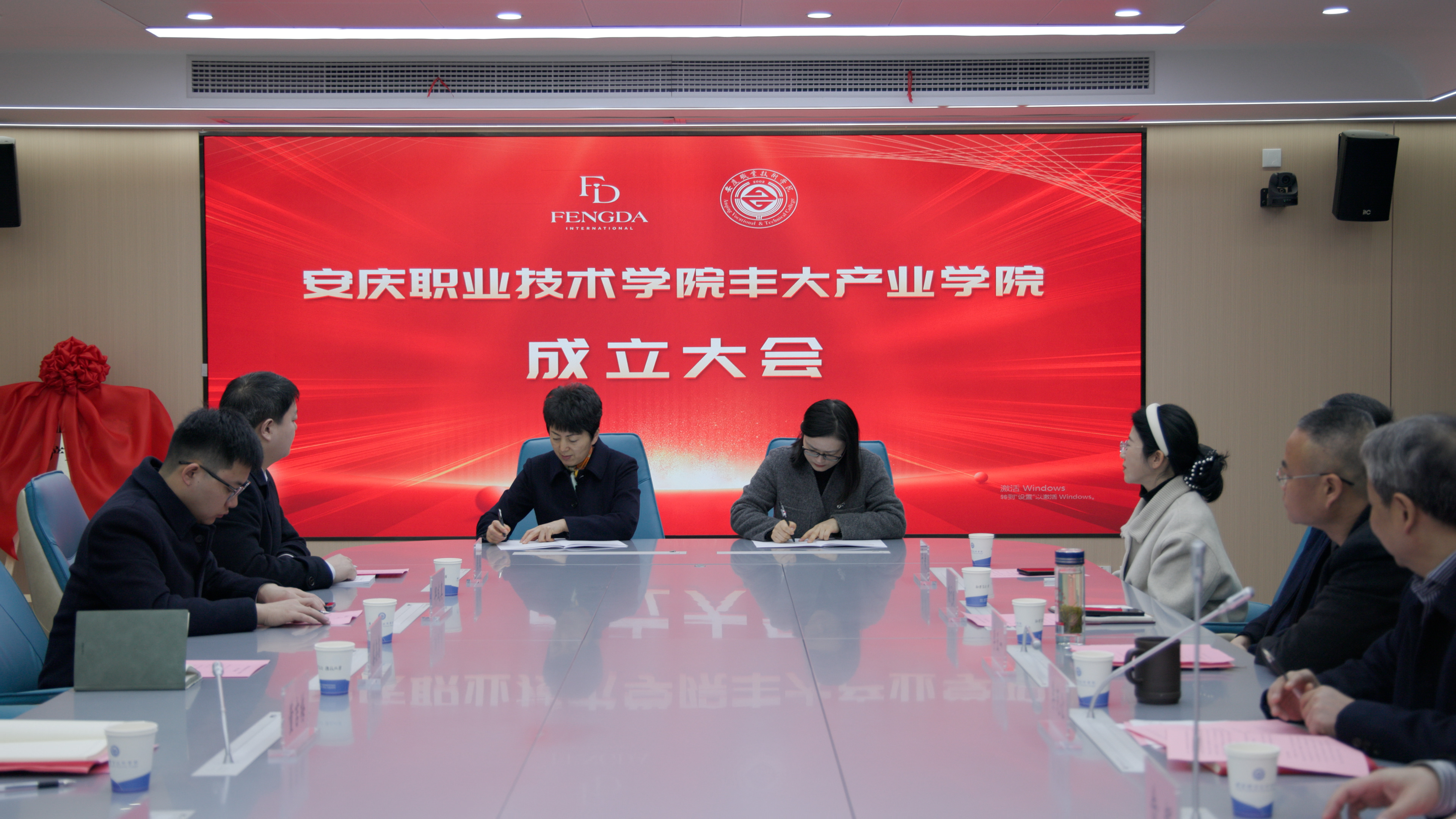 儀式上,李克讓、余輝共同為安慶職業(yè)技術(shù)學(xué)院豐大產(chǎn)業(yè)學(xué)院揭牌。安慶豐大國(guó)際大酒店與管理服務(wù)學(xué)院簽訂共建協(xié)議。