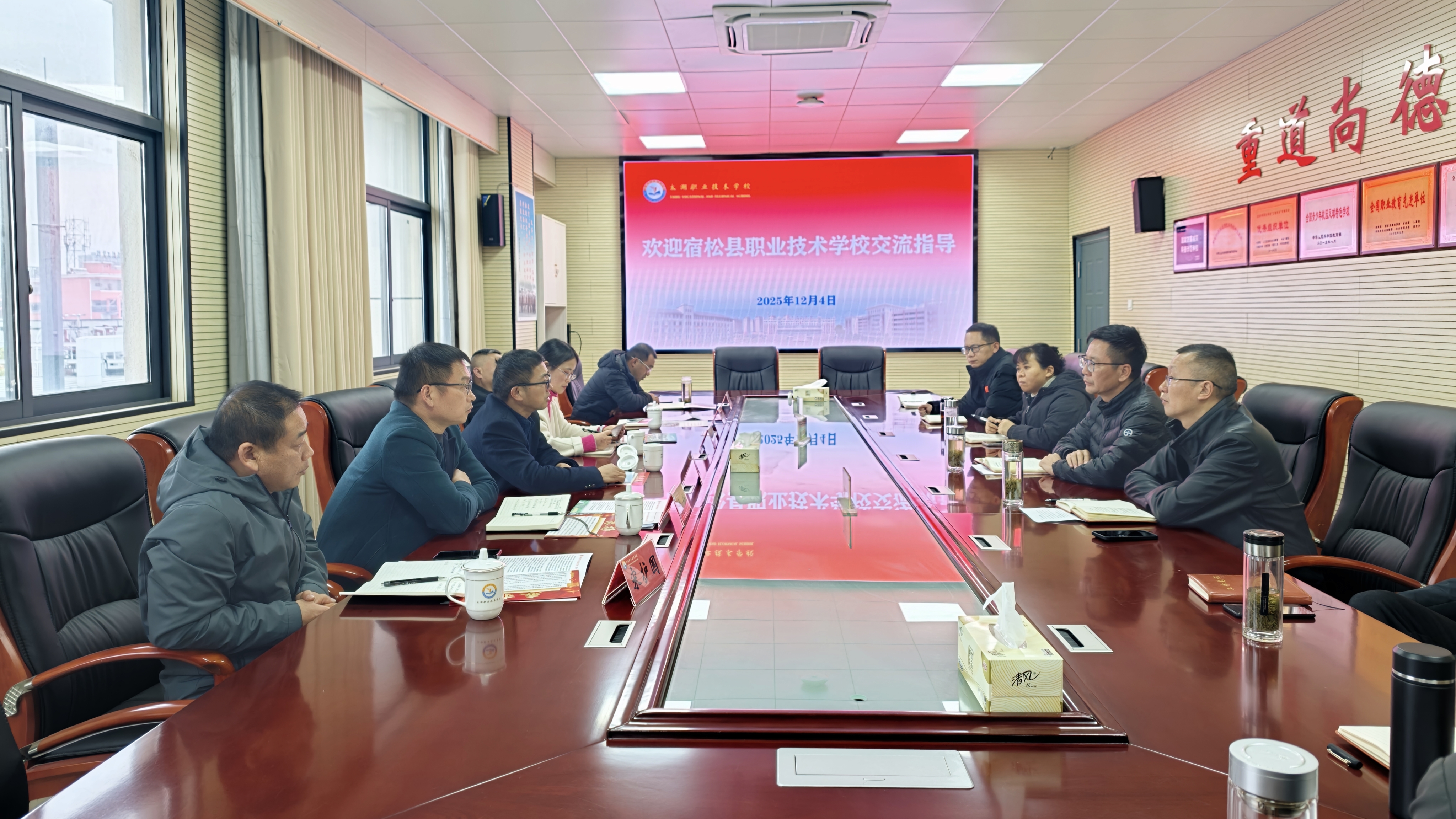 12月4日,宿松縣職業(yè)技術(shù)學(xué)校黨支部書記、校長鄧勝榮率領(lǐng)調(diào)研團隊一行6人來訪我校,圍繞專業(yè)建設(shè)、辦學(xué)層次提升、教學(xué)管理、校企合作等核心議題開展專題調(diào)研交流。我校班子成員及相關(guān)職能部門負責(zé)人參與接待,雙方通過座談研討與實地參觀,展開深入交流,凝聚發(fā)展共識。