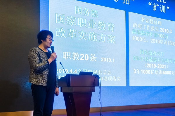 在主場(chǎng)報告會(huì )上,王進(jìn)代表集團理事會(huì )致歡迎辭,向過(guò)去一年多時(shí)間里為深化產(chǎn)教融合、校企合作給予大力指導和支持的主管部門(mén)、產(chǎn)業(yè)園區的領(lǐng)導同志們表示衷心感謝,向與職業(yè)院校攜手合作、相向而行的企業(yè)家和企業(yè)界朋友們表示崇高的敬意,向一起風(fēng)雨同舟、協(xié)同協(xié)力的各成員學(xué)校的領(lǐng)導和老師們表示誠摯的慰問(wèn)。王進(jìn)指出,本次會(huì )議的主旨是:以習近平新時(shí)代中國特色社會(huì )主義思想為指導,認真學(xué)習貫徹黨的十九大和黨的十九屆四中全會(huì )精神,認真學(xué)習貫徹國家關(guān)于職業(yè)教育各項改革部署要求,認真學(xué)習貫徹市政府工作報告中所提出的深化集團“1+7”改革要求,謀深謀細謀實(shí)集團2020年各項工作,著(zhù)力提升集團人才培養質(zhì)量和服務(wù)產(chǎn)業(yè)發(fā)展能力。