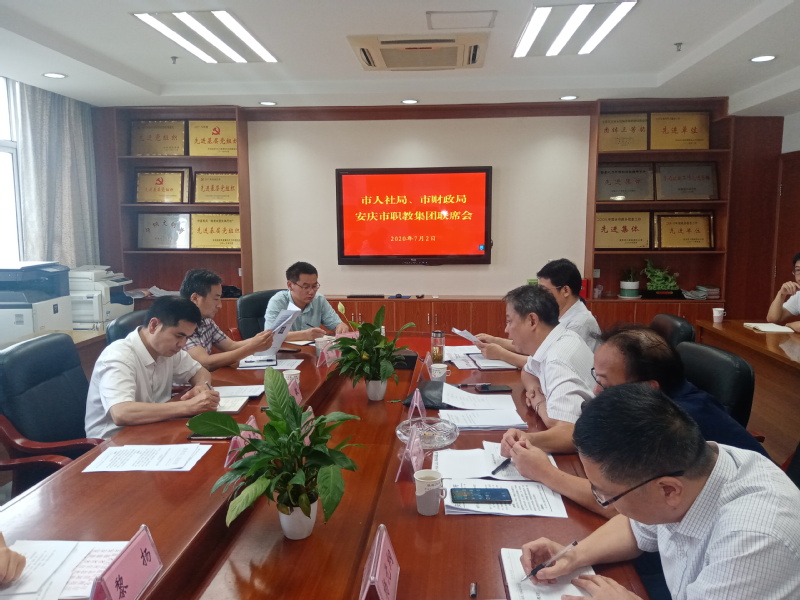 7月2日,職教集團與市人社局、財政局共同召開(kāi)聯(lián)席會(huì )議,推動(dòng)集團工作落實(shí)。集團領(lǐng)導、安慶職業(yè)技術(shù)學(xué)院副院長(cháng)李克讓?zhuān)腥松缇指本珠L(cháng)方敏和市財政局施響科長(cháng)出席,并指導對接事宜。