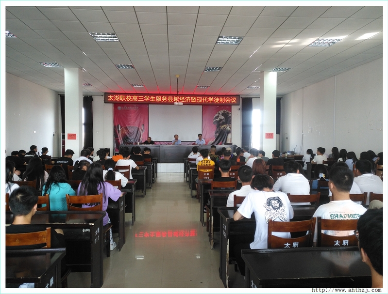 為進(jìn)一步推進(jìn)現(xiàn)代學(xué)徒制工作,2020年9月5日上午9點(diǎn),太湖職業(yè)技術(shù)學(xué)校在教學(xué)樓七樓會(huì)議室召開(kāi)了“高三學(xué)生服務(wù)縣域經(jīng)濟(jì)暨現(xiàn)代學(xué)徒制大會(huì)”。校長(zhǎng)張璇、副校長(zhǎng)葉克華以及實(shí)訓(xùn)處相關(guān)領(lǐng)導(dǎo)、高三年級(jí)組組長(zhǎng)及班主任和121名高三學(xué)生參加了此次大會(huì)。