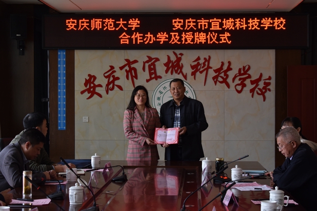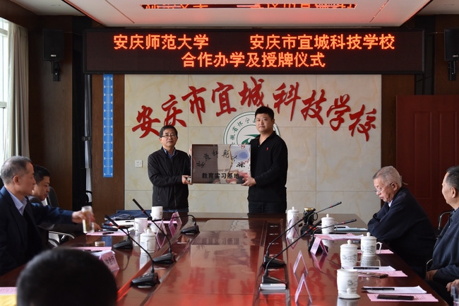 授牌儀式上,余振華對安慶師范大學(xué)長期以來對安慶市宜城科技學(xué)校的支持表示衷心感謝,并介紹了學(xué)校的建校歷史、辦學(xué)理念及辦學(xué)成果,表示不遺余力地為安慶師范大學(xué)實習(xí)生提供實習(xí)、就業(yè)的良好環(huán)境、為貴校輸送優(yōu)質(zhì)的畢業(yè)生生源,希望兩校之間加強交流與合作,共享教育資源長久合作、規(guī)范合作,為安慶的經(jīng)濟和社會發(fā)展作出積極貢獻(xiàn)。
