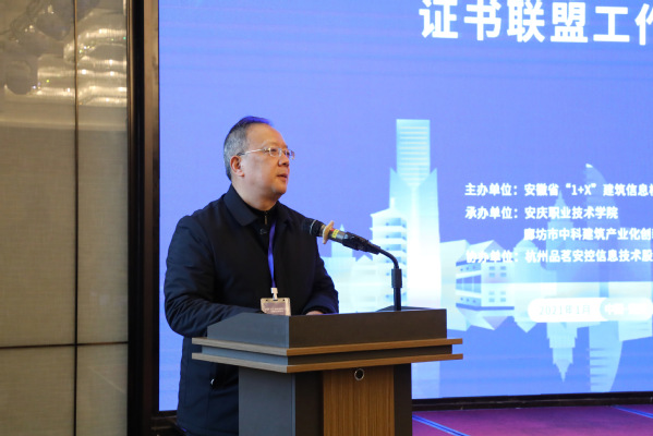 1月9日,安徽省“1+X”(BIM)證書聯(lián)盟工作研討會(huì)在安慶世紀(jì)緣酒店成功舉辦。安慶職業(yè)技術(shù)學(xué)院校長(zhǎng)畢明生,副校長(zhǎng)、安徽省BIM證書聯(lián)盟秘書長(zhǎng)譚維奇,廊坊市中科建筑產(chǎn)業(yè)化創(chuàng)新研究中心副主任、江蘇城鄉(xiāng)建設(shè)職業(yè)學(xué)院副校長(zhǎng)王偉等出席會(huì)議并講話。來自安徽省BIM證書聯(lián)盟的22所院校建工院院長(zhǎng)和相關(guān)骨干老師、以及廊坊中科安徽省工作辦公室、杭州品茗安控信息技術(shù)股份有限公司的代表參加了會(huì)議。會(huì)議由安慶職業(yè)技術(shù)學(xué)院建筑工程學(xué)院負(fù)責(zé)同志主持。