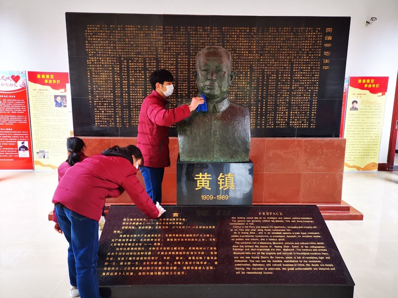 參觀結束后,同學們拿起勞動工具,自發(fā)的打掃陳列館的衛(wèi)生?!拔以诓潦命S鎮(zhèn)爺爺的塑像時,覺得黃鎮(zhèn)爺爺在注視著我,他勉勵我要爭做時代雷鋒。”劉俊嶺同學如是說。