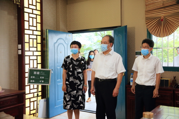視察校園,校長(cháng)畢明生、副校長(cháng)譚維奇、黨委委員沈良生陪同