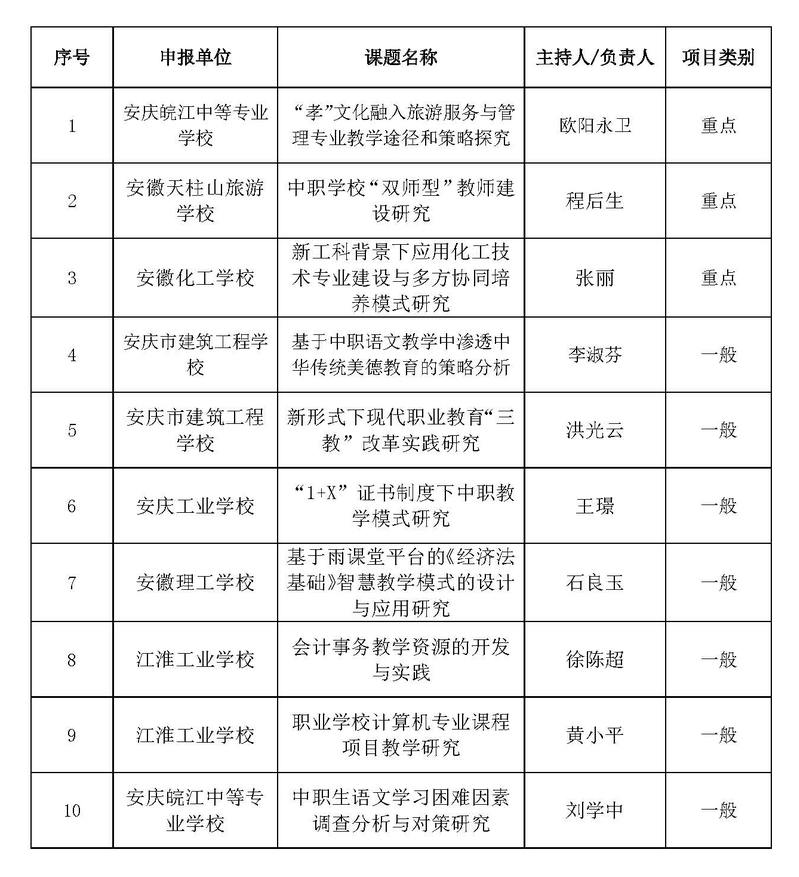 根據《安慶職業(yè)教育集團關(guān)于做好2020年教學(xué)改革研究課題中期檢查及2021年教學(xué)改革研究課題申報工作的通知》文件精神,經(jīng)個(gè)人申報、學(xué)校推薦,集團秘書(shū)處按照相關(guān)程序組織形式審查、專(zhuān)家評審,現對集團2021年教學(xué)改革研究課題擬立項名單進(jìn)行公示。
