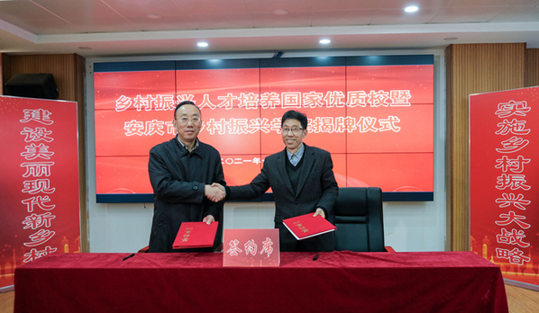 揭牌儀式上,劉克勝、童宏葵、畢明生、吳永生共同為“鄉村振興人才培養國家優(yōu)質(zhì)?!焙汀鞍矐c市鄉村振興學(xué)院”揭牌。畢明生、吳永生簽署了《安慶市鄉村振興局與安慶職業(yè)技術(shù)學(xué)院政校共建安慶市鄉村振興學(xué)院框架協(xié)議》。(文:楊元綱 圖:姚 盈、翟程玲)