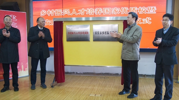 12月1日上午,鄉村振興人才培養國家優(yōu)質(zhì)校暨安慶市鄉村振興學(xué)院揭牌儀式在安慶職業(yè)技術(shù)學(xué)院隆重舉行。副市長(cháng)劉克勝,安慶職院黨委書(shū)記童宏葵,校黨委副書(shū)記、校長(cháng)畢明生,市鄉村振興局局長(cháng)吳永生、副局長(cháng)王輝,校領(lǐng)導李克讓、潘發(fā)生出席揭牌儀式。安慶市鄉村振興學(xué)院建設發(fā)展工作領(lǐng)導小組全體成員及安慶職院農林與服裝學(xué)院、教務(wù)處、學(xué)生處、科技處、招就處、培訓部、校企合作辦等單位相關(guān)負責同志參加揭牌儀式。