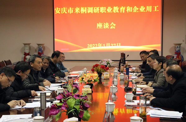 1月27日,安慶職業(yè)技術(shù)學(xué)院黨委書(shū)記童宏葵率隊調研桐城市職業(yè)教育發(fā)展情況。桐城市委副書(shū)記金秋明,桐城市人大常委會(huì )副主任、人社局局長(cháng)詹向前,副市長(cháng)汪杰賢,政協(xié)副主席、教育局局長(cháng)劉決成,安慶市教體局副局長(cháng)潘連宇、四級調研員吳宗亞,安慶職院黨委副書(shū)記李克讓及安慶職院校企合作辦、招生就業(yè)處負責同志參加調研。