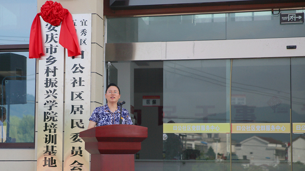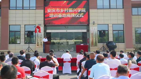 69日上午,安慶市鄉村振興學(xué)院培訓基地在五橫鄉曰公社區掛牌,同時(shí)宜秀區高素質(zhì)農民培訓班開(kāi)班。安慶職業(yè)技術(shù)學(xué)院黨委書(shū)記童宏葵、副書(shū)記李克讓、駐五橫鄉曰公社區鄉村振興指導員王進(jìn),市農業(yè)農村局黨組成員市委農辦專(zhuān)職副主任戴向前、市鄉村振興局副局長(cháng)王輝,宜秀區人大常委會(huì )主任曹紅斌、宜秀區區委常委、組織部長(cháng)、統戰部長(cháng)劉曉麗,副區長(cháng)張泓等出席儀式并揭牌。