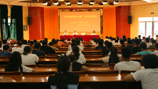 樹(shù)木郁郁蔥蔥,喜鵲嘰嘰喳喳,盛夏的校園灑滿(mǎn)陽(yáng)光,生機盎然。629日下午,安慶職業(yè)技術(shù)學(xué)院黨委書(shū)記童宏葵在圖文信息中心主持召開(kāi)一場(chǎng)與往常不同招聘對接會(huì )——“區長(cháng)接你來(lái)上崗”。迎江區區長(cháng)汪世平求賢若渴地帶領(lǐng)政府辦、發(fā)改委、經(jīng)信局、人社局、農業(yè)農村局、商務(wù)局、區委宣傳部、經(jīng)開(kāi)區主要負責人和7家重點(diǎn)企業(yè)代表,走進(jìn)校園,為企業(yè)招聘所需的技能型人才。