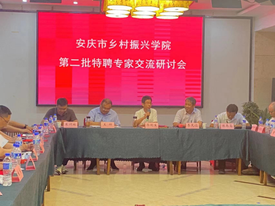 8月19日安慶市鄉村振興學(xué)院第二批特聘專(zhuān)家交流研討會(huì )在黃梅山莊順利舉行。安慶職業(yè)技術(shù)學(xué)院黨委副書(shū)記、校長(cháng)畢明生出席并講話(huà),校黨委副書(shū)記李克讓主持研討會(huì )。安慶市鄉村振興局副局長(cháng)王輝,農林與服裝學(xué)院、校企合作辦、培訓部負責同志及安慶市鄉村振興學(xué)院特聘專(zhuān)家共謀鄉村振興人才培養工作。