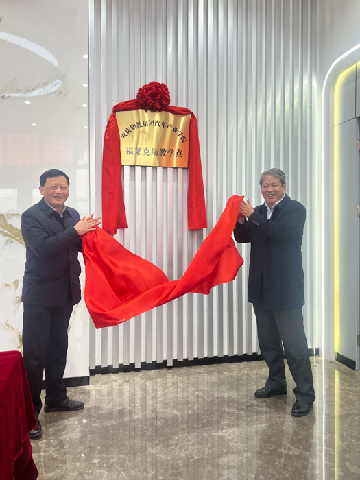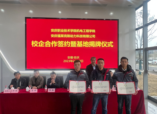 2月10日上午,集團秘書(shū)長(cháng)、安慶職業(yè)技術(shù)學(xué)院黨委副書(shū)記李克讓?zhuān)矐c經(jīng)開(kāi)區黨工委委員、紀監委書(shū)記嚴衛江齊聚安慶福萊克斯動(dòng)力科技有限公司,出席安慶職院與安慶福萊克斯公司戰略合作簽約儀式并講話(huà),共同為“安慶職教集團汽車(chē)產(chǎn)業(yè)學(xué)院福萊克斯教學(xué)基地”揭牌。安慶職院相關(guān)職能部門(mén)、機電工程學(xué)院相關(guān)負責人,經(jīng)開(kāi)區人社局相關(guān)負責同志,福萊克斯相關(guān)負責人以及首屆“福萊克斯班”學(xué)員共同見(jiàn)證了這一歷史性時(shí)刻。