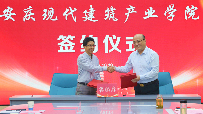 隨后,畢明生和謝長(cháng)兵分別代表校、政雙方共同簽署了《共建安慶現代建筑產(chǎn)業(yè)學(xué)院框架協(xié)議》。