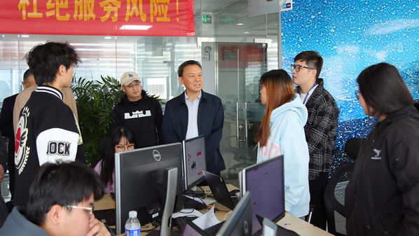 在安徽云霽電子商務(wù)有限公司,童宏葵詳細了解了企業(yè)經(jīng)營(yíng)、發(fā)展情況和同學(xué)們實(shí)習工作情況。公司負責人汪義德很滿(mǎn)意地說(shuō),企業(yè)員工中,有三分之一來(lái)自安職院。同學(xué)們能夠快速適應職場(chǎng)環(huán)境,展現出良好的職業(yè)素養和專(zhuān)業(yè)技能。公司與安慶職院已達成較為深入的合作,目前以訂單班等形式共同制定了人才培養方案和教學(xué)計劃,打造具有特色的課程體系和實(shí)踐教學(xué)體系,已聯(lián)合培養了三屆電商專(zhuān)業(yè)學(xué)生。童宏葵看到在這里實(shí)習、就業(yè)的學(xué)生,個(gè)個(gè)精神飽滿(mǎn),人人干勁十足,非常欣慰,鼓勵他們再接再厲,任勞任怨,為公司多作貢獻,為學(xué)校多爭光。