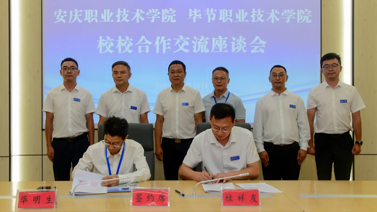 8月28日至29日,安慶職業(yè)技術(shù)學(xué)院校長(cháng)畢明生應邀赴畢節職業(yè)技術(shù)學(xué)院參加2025中國-東盟教育交流周“校旅結合·職業(yè)教育助力鄉村振興”活動(dòng),并與畢節職業(yè)技術(shù)學(xué)院簽署框架合作協(xié)議。