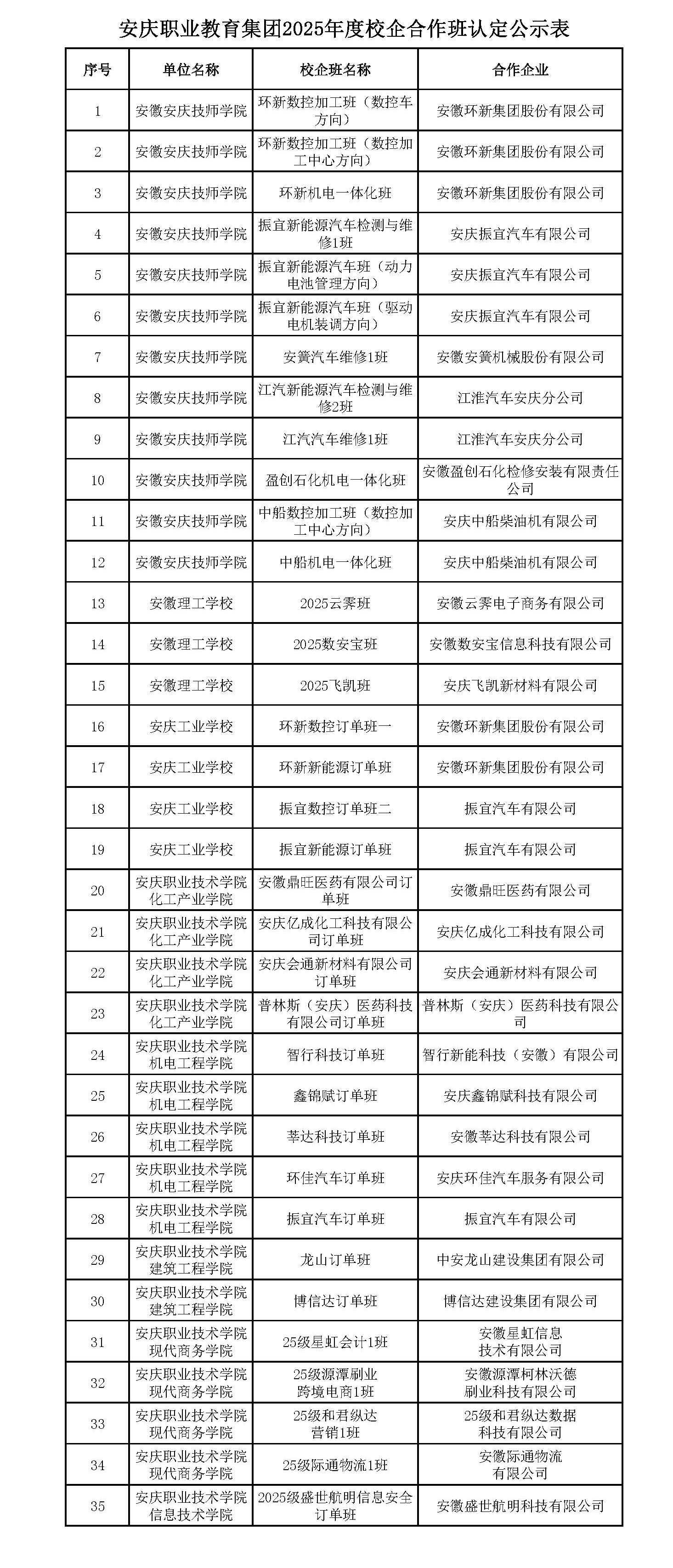 根據《關(guān)于報送招生、校企合作班項目獎補資金申報材料的通知》(安職集團〔2025〕8號)等相關(guān)文件要求,集團秘書(shū)處組織開(kāi)展了2025年度招生、產(chǎn)業(yè)學(xué)院和校企合作班項目評審工作,制定出臺《安慶職業(yè)教育集團2025年度招生、產(chǎn)業(yè)學(xué)院和校企合作班評審工作實(shí)施方案》,成立評審工作領(lǐng)導小組,設立評委會(huì ),遴選評審專(zhuān)家,并嚴格按照《關(guān)于印發(fā)〈安慶職業(yè)教育集團財政獎補資金認定管理辦法〉的通知》(教體高〔2024〕185號)文件對各校提供的項目申報材料進(jìn)行了評審,認定結果現予公示。
