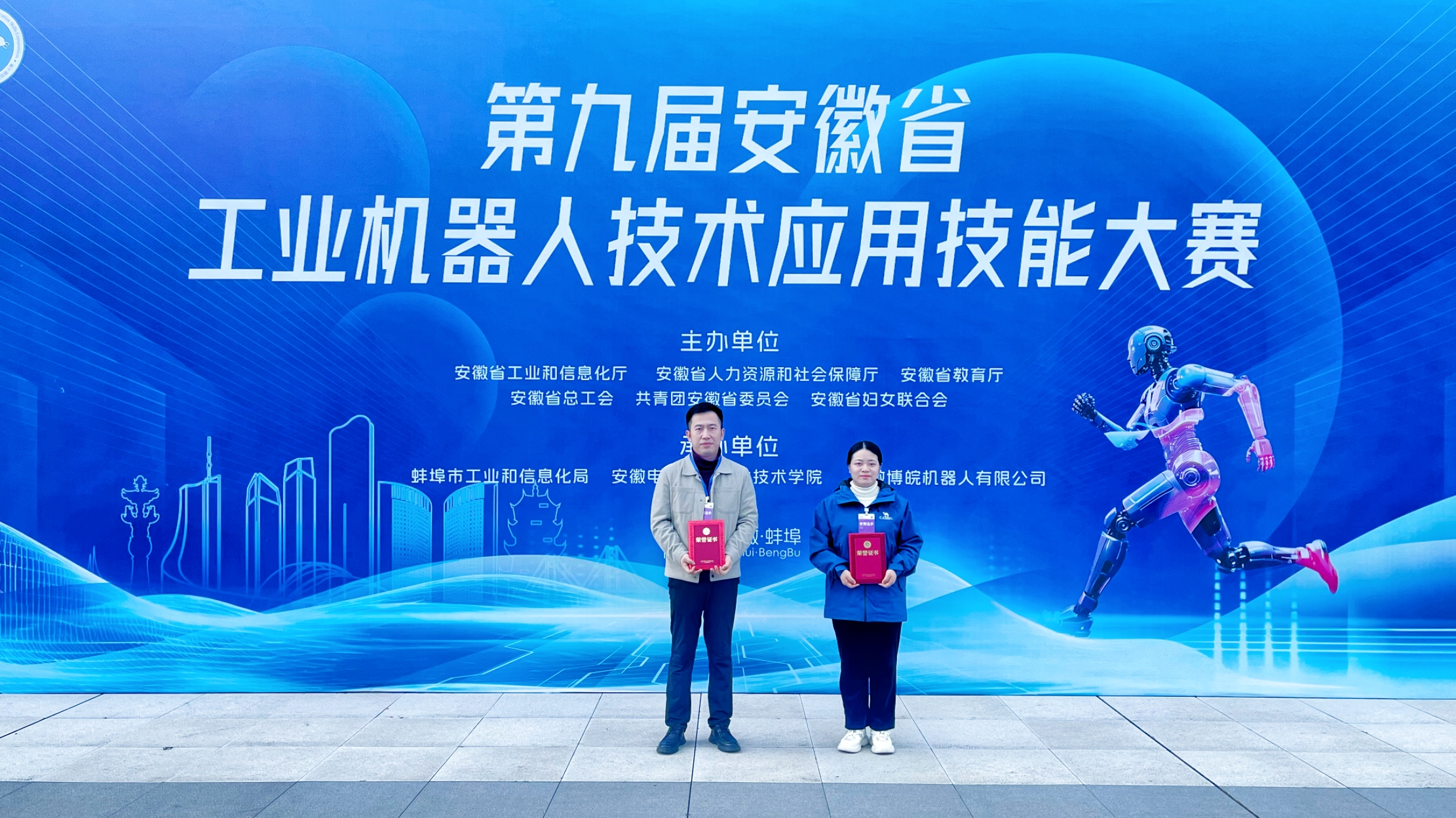 11月21日,由安徽省經(jīng)濟和信息化廳、省人力資源和社會(huì )保障廳、省教育廳等七部門(mén)聯(lián)合主辦的第九屆安徽省工業(yè)機器人技術(shù)應用技能大賽在蚌埠安徽電子信息職業(yè)技術(shù)學(xué)院閉幕。安慶職業(yè)技術(shù)學(xué)院機電工程學(xué)院師生再創(chuàng )佳績(jì),姚兆鳳、張嘯川兩位老師榮獲教師組二等獎。許凱華、王濤兩位同學(xué)獲得學(xué)生組三等獎。